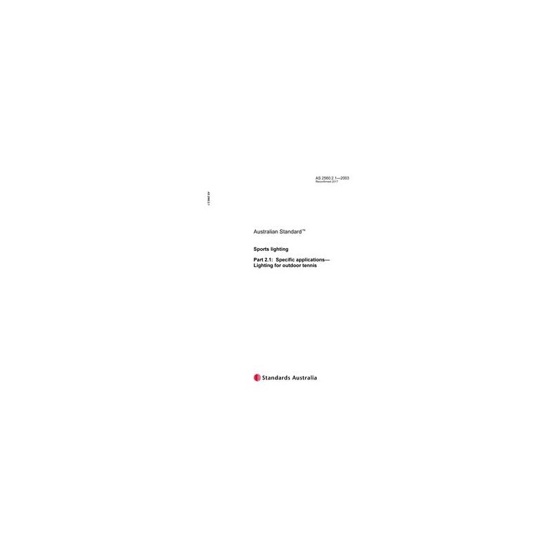 Specifies requirements specific to lighting outdoor tennis courts and examines the particular visual tasks associated with this sport. Lighting levels are specified for national/international, club competition/commercial and recreational/residential levels of play, but lighting for television broadcasting is not included. To be read in conjunction with AS 2560.1. Deals with the same technical areas as the 1982 edition but includes requirements as well as recommendations, the requirements applying to measurement techniques and acceptable levels of various lighting parameters. Other changes include the introduction of a second uniformity measurement, glare rating requirements and specified locations for illuminance and glare calculations or measurements.
