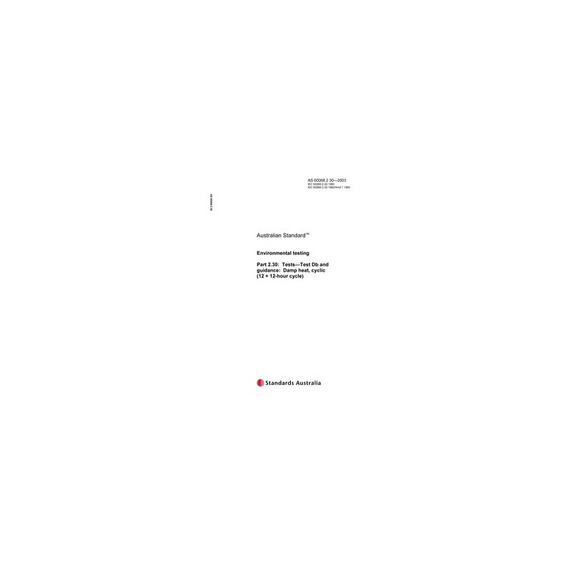 AS 60068.2.30-2003 [ Withdrawn ] Environmental testing - Tests - Test Db and guidance: Damp heat, cyclic (12 + 12-hour cycle)