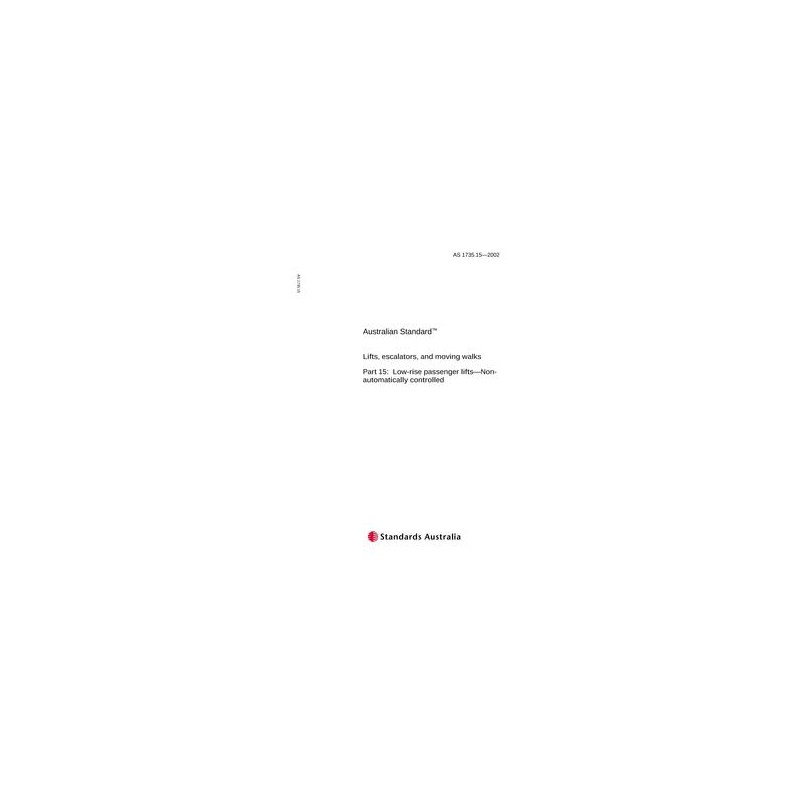 AS 1735.15-2002 [ Current ] Lifts, escalators, and moving walks, Part 15: Low-rise passenger lifts - Non-automatically controlled