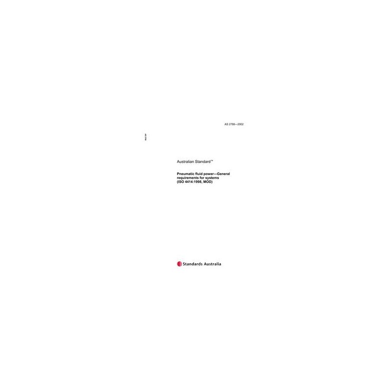 AS 2788-2002 [ Current ] Pneumatic fluid power - General requirements for systems (ISO 4414:1998, MOD)