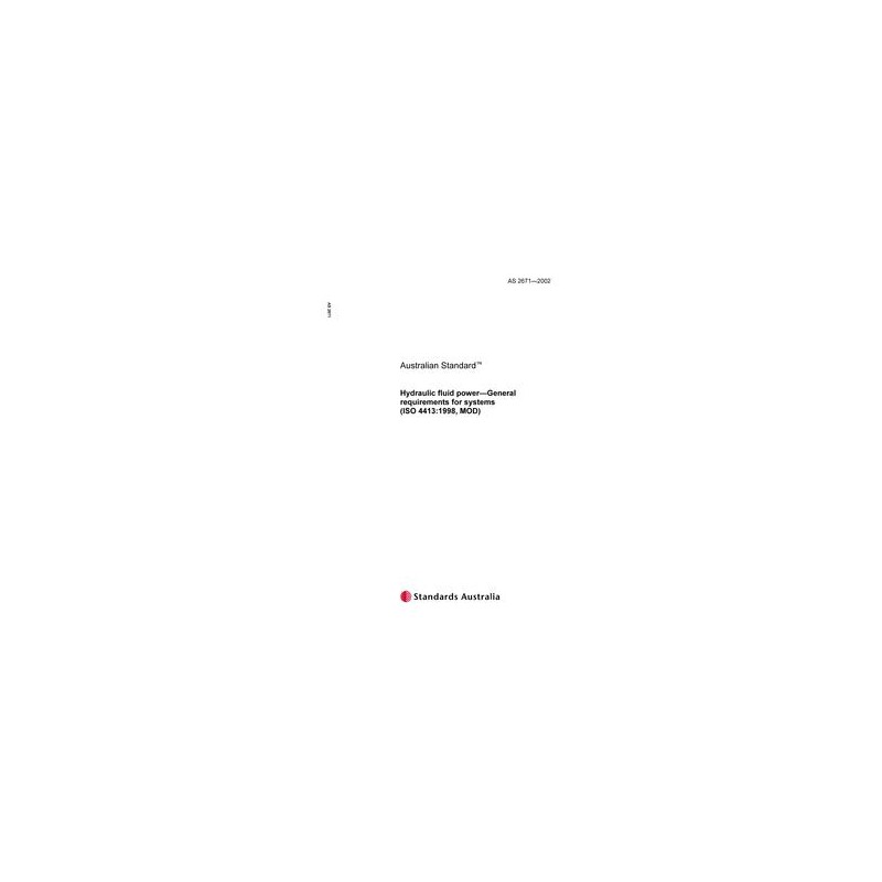 AS 2671-2002 [ Current ] Hydraulic fluid power - General requirements for systems (ISO 4413:1998, MOD)