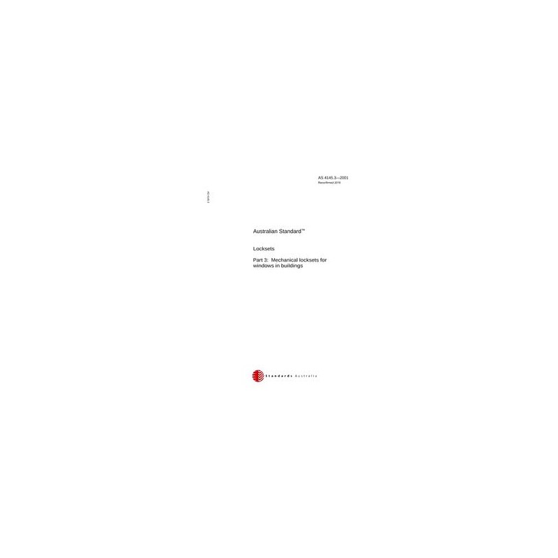 AS 4145.3-2001 [ Current ] Locksets, Part 3: Mechanical locksets for windows in buildings