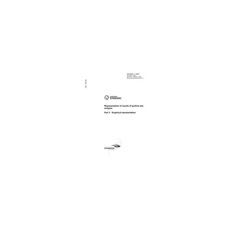 This Standard sets out rules for the graphical representation of particle size analysis data in histograms, density distributions and cumulative distributions. It also establishes a standard nomenclature to be followed to obtain the distribution mentioned above from measured data. This Standard is identical with and has been reproduced from ISO 9276-1:1998.
