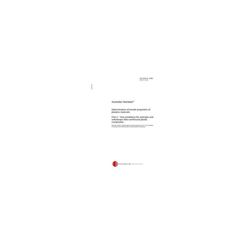 AS 1145.4-2001 Determination of tensile properties of plastics materials, Part 4: Test conditions for isotropic and orthotropic fibre-reinforced plastic composites