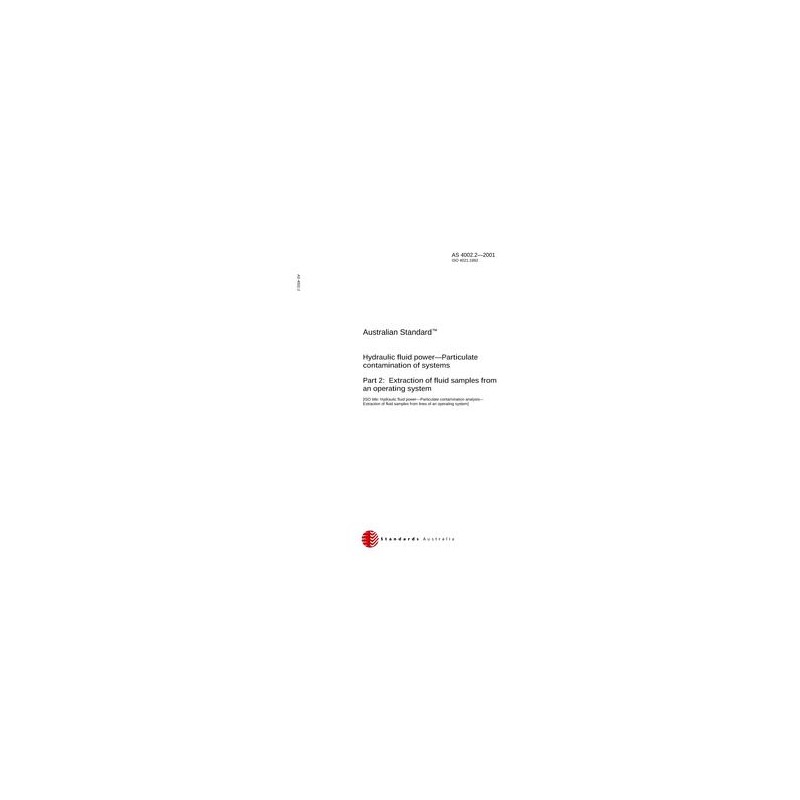 AS 4002.2-2001 [ Withdrawn ] Hydraulic fluid power - Particulate contamination of systems - Extraction of fluid samples from an operating system
