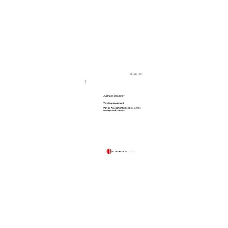 Specifies the criteria for assessing the effectiveness of termite management systems intended for use in buildings and structures as required by AS 3660.1 or AS 3660.2 It also outlines procedures to assess the ability of a system and its components to manage termite activity in and around buildings and structures. It is intended for use by termite management system manufacturers, assessment providers and approval authorities where the systems are intended for use in any part of Australia where subterranean termites are a risk. It is not intended for the assessment of the system components to perform other functions as building materials.