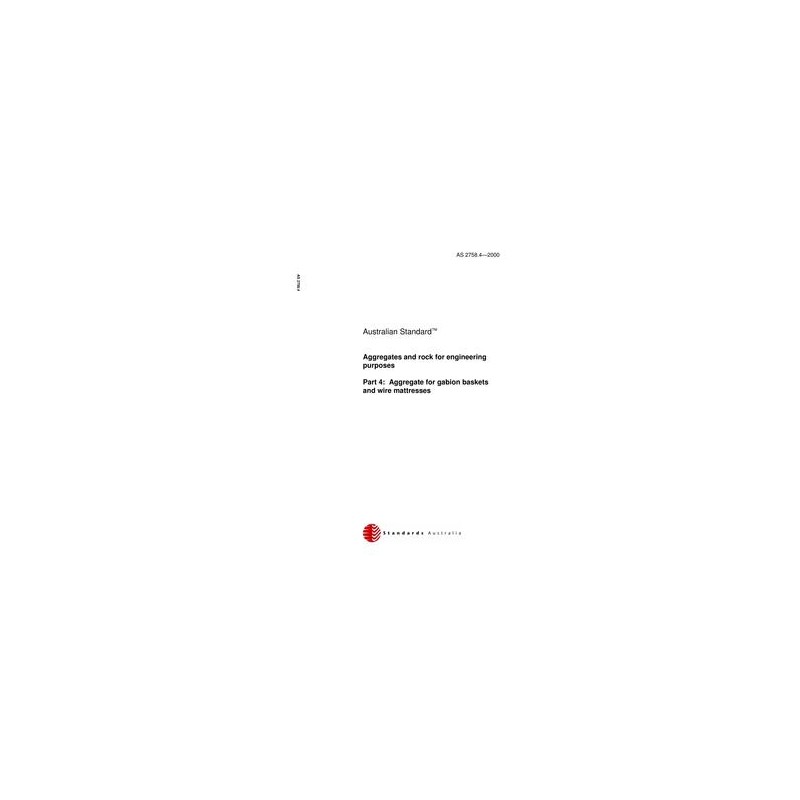 AS 2758.4-2000 [ Superseded ] Aggregates and rock for engineering purposes - Aggregate for gabion baskets and wire mattresses