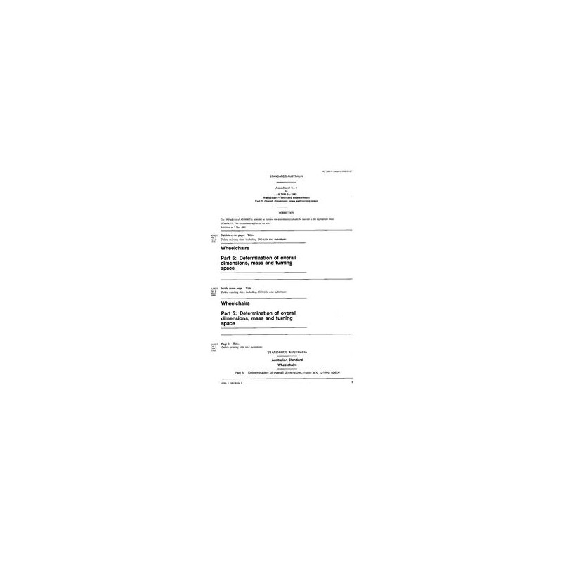 AS 3696.5-1989 AMDT 1 [ Current ] Wheelchairs - Part 5: Determination of overall dimensions, mass and turning space