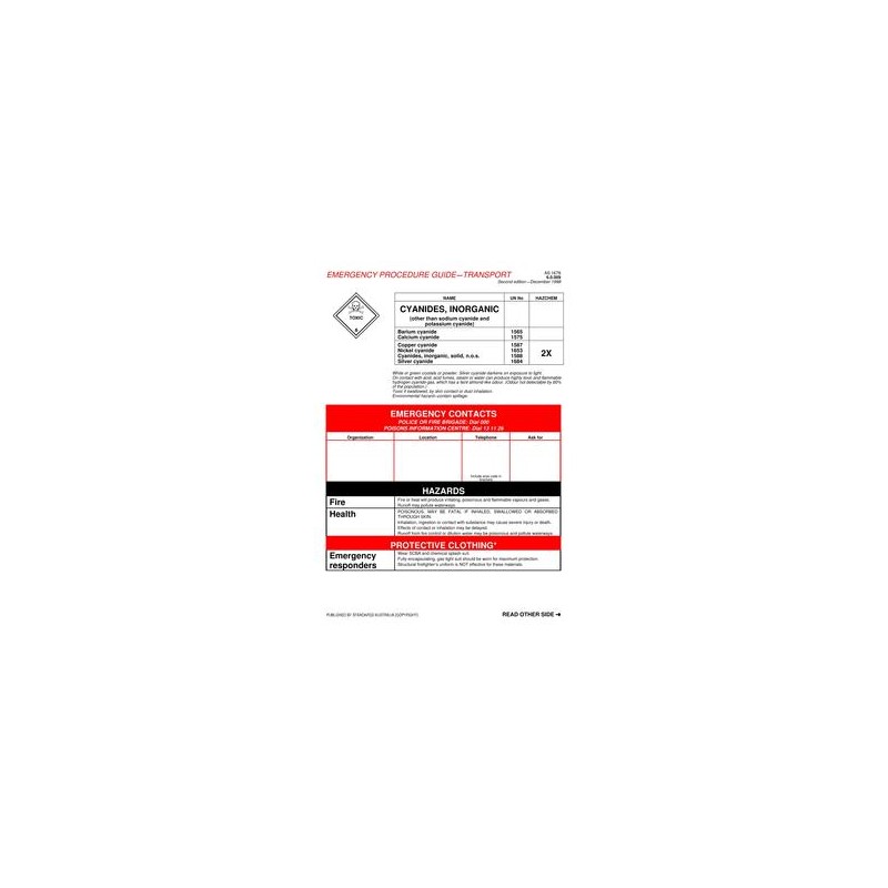 AS 1678.6.0.009-1998 [ Pending Revision ] Emergency procedure guide - Transport, Part 6.0.009: Cyanides, inorganic