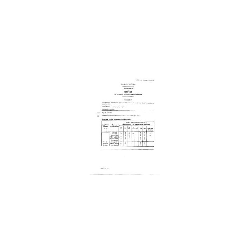 AS 3814-1998 AMDT 1 [ Withdrawn ] Code for industrial and commercial gas-fired appliances