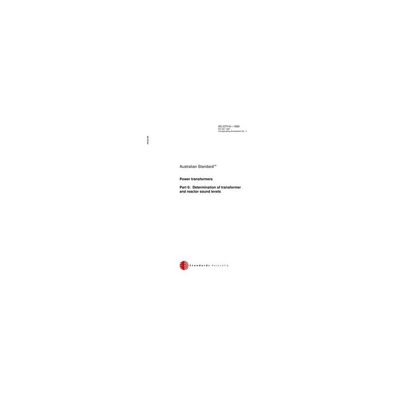 Defines sound power versus sound pressure and sets out the methods by which the sound power levels of transformers, reactors, and their associated cooling equipment shall be determined. Standard and reduced sound power level limits for transformers only have been added in an Australian Appendix. Technically equivalent to IEC 551:1987, with the addition of Appendix AA.