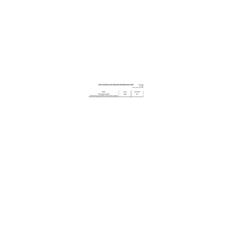 AS 2508.8.010-1990 [ Withdrawn ] Safe storage and handling information cards for hazardous materials - Sulfuric acid (up to 98% m/m)
