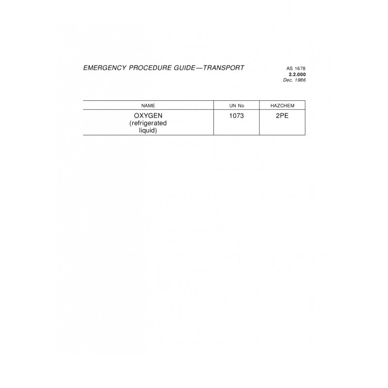 Quick-reference card for retention in vehicles and by emergency services , to be used where road transport vehicles are involved in accidents, spills or leaks, or fire. Information on hazards, emergency procedures and first aid are given. To be used in conjunction with the ADG code and AS 2931.