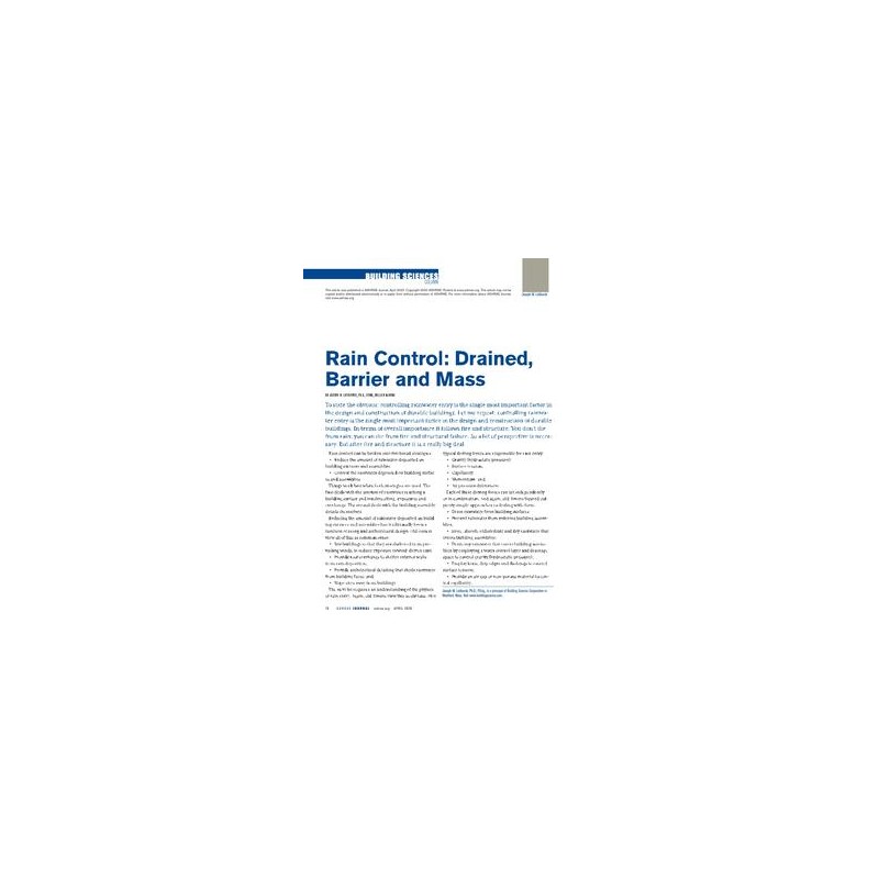 Controlling rainwater entry is the single most important factor in the design and construction of durable buildings. Joe breaks down the two broad strategies for controlling rainwater entry.