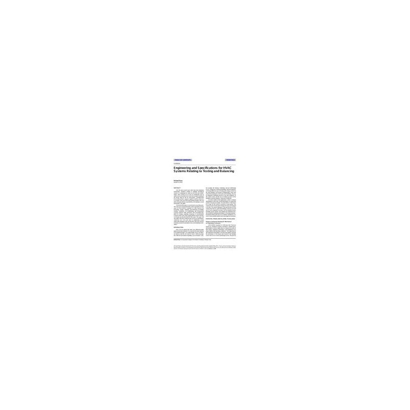CH-99-09-4 -- Engineering and Specifications for HVAC Systems Relating to Testing and Balancing