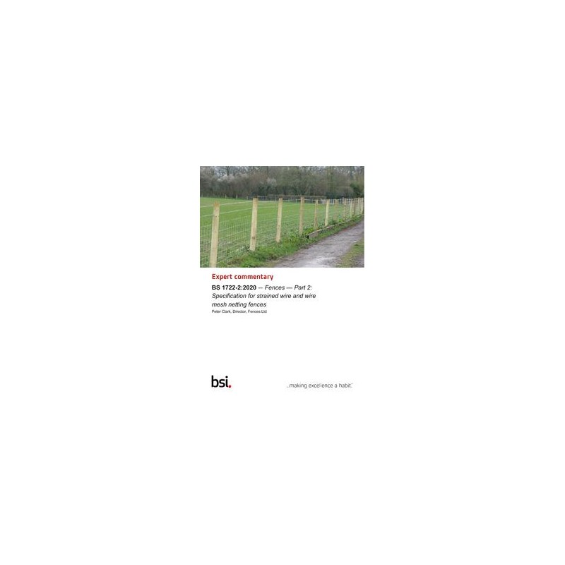 The revision of this specification for strained wire brings the document in line with modern practicesin wire mesh fencing, taking account of changes in livestock husbandry, advancements in fencingtechniques, expansion of products and species in the fencing sector, new manufacturing techniques,and quantifiable and improved functionality of foundations.These changes will impact designated individuals such as designers, grant authorities, localauthorities, contractors and suppliers. BS 1722-2:2020 is the foundation for best practice in the UK. Itis suggested that users review their own arrangements in light of these revisions.
