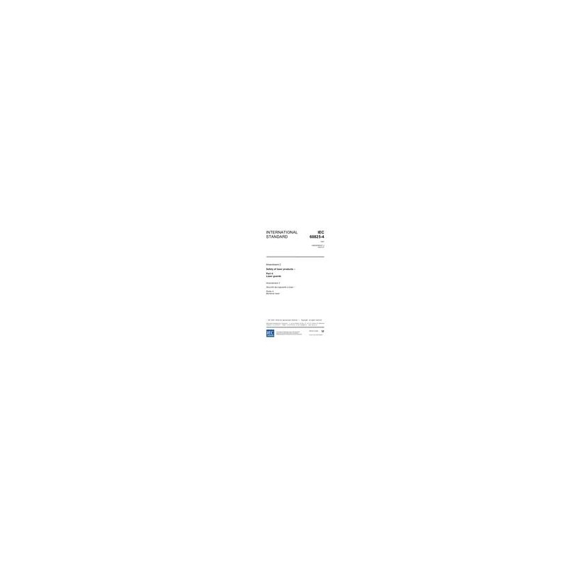 IEC 60825-4 Amd.2 Ed. 1.0 en:2003 [ Withdrawn ] Amendment 2 - Safety of laser products - Part 4: Laser guards
