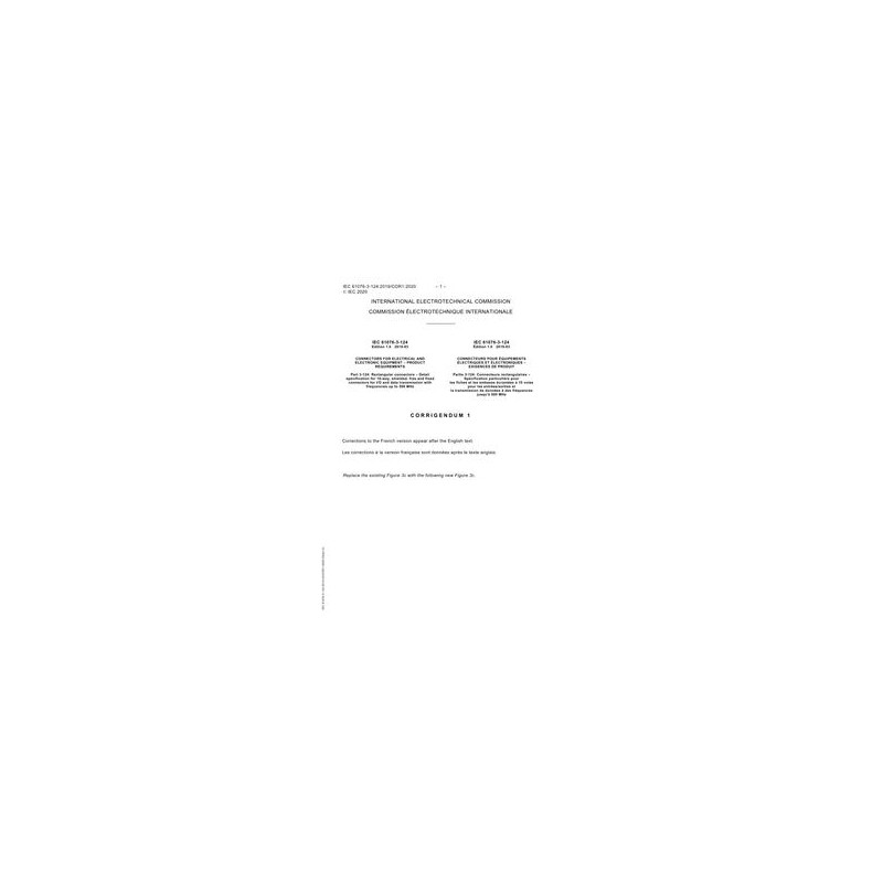 IEC 61076-3-124 Cor.1 Ed. 1.0 b:2020 Corrigendum 1 - Connectors for electrical and electronic equipment - Product requirements - Part 3-124: Rectangular connectors - Detail specification for 10-way, shielded, free and fixed connectors for I/O and data transmission with frequencies up to 500 MHz