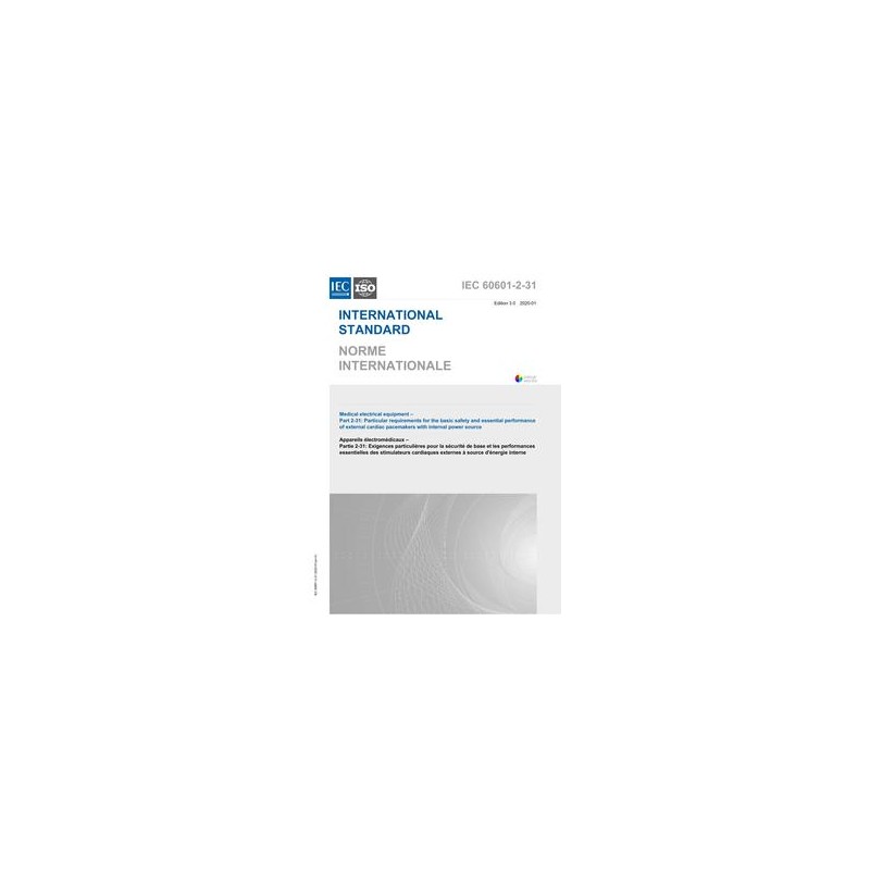 IEC 60601-2-31 Ed. 3.0 b:2020 Medical electrical equipment - Part 2-31: Particular requirements for the basic safety and essential performance of external cardiac pacemakers with internal power source