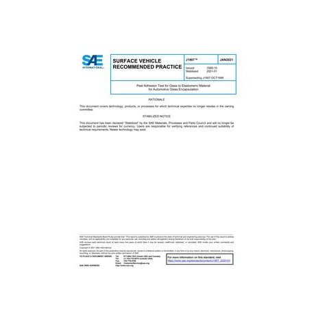 This recommended practice defines a procedure for the construction and testing of a 180 deg peel specimen for the purpose of determining the bondability of glass to elastomeric material in automotive modular glass. This test method suggests that elastomeric material of less than 172 mpa modulus be used as the encapsulating material. The present practice of encapsulating automotive glass is described as molded-in-place elastomeric material onto the outer edge of the glass using thermoplastic or thermosetting material that quickly sets in the mold. The glass is removed from the mold with the cured elastomeric material bonded to the perimeter of the glass. This encapsulated glass module can now be bonded with a sealant adhesive into the body opening of a vehicle.